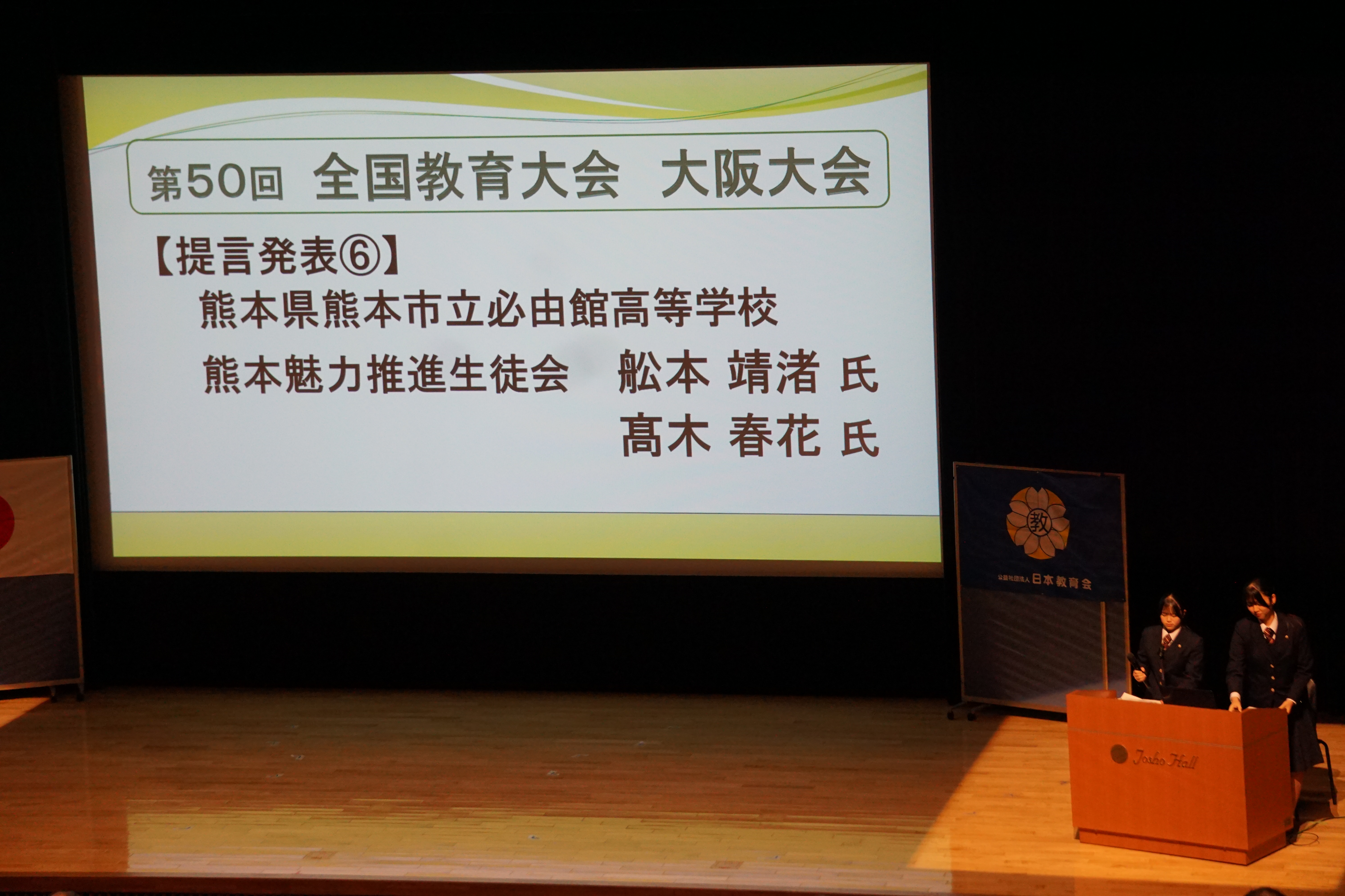 《家庭・地域社会》 若者が主役のまちづくりを熊本から ~高校生がつなぐ、地域の魅力と希望のバトン~ 熊本魅力推進生徒会 3年生 舩本 靖渚 氏 髙木 春花 氏 |
